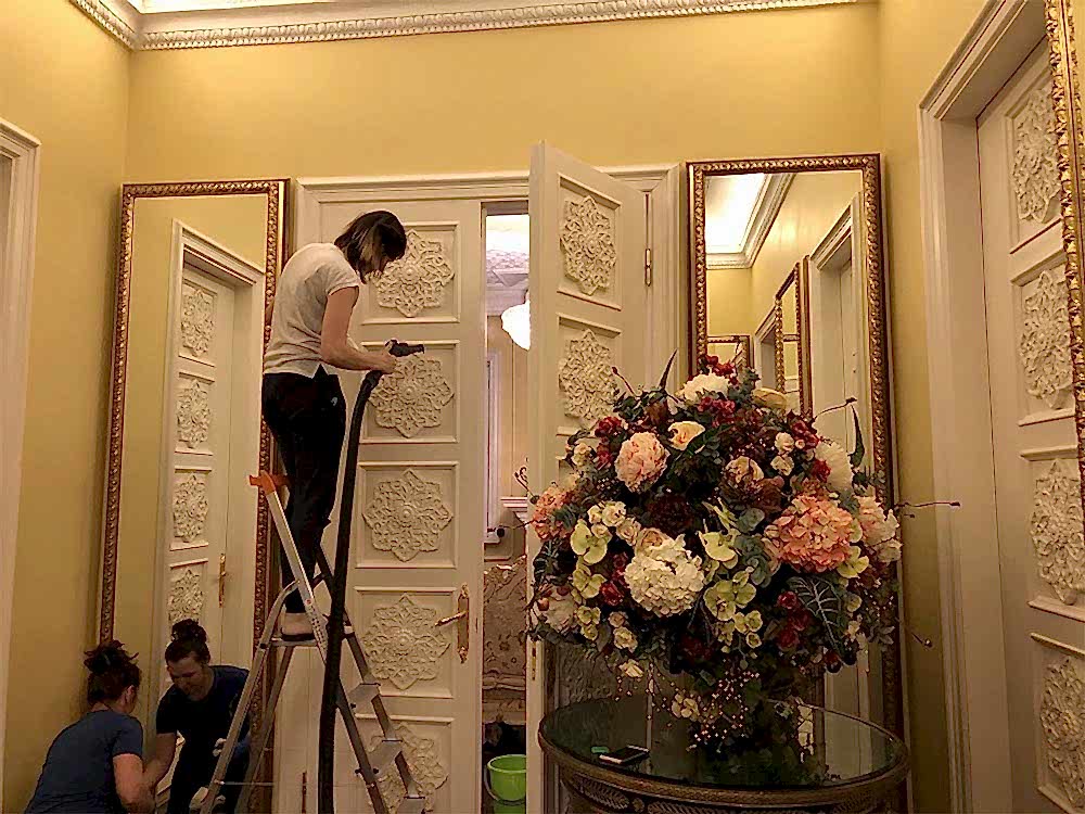 Приезд бригады клинеров с профессиональным оборудованием, инструментами, лестницами, Pin-Up
